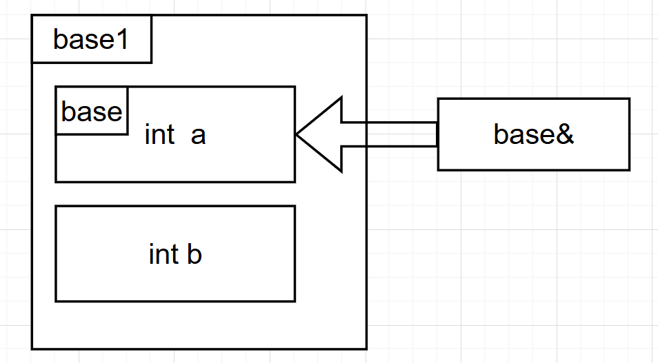 引用事实上是一种隐式的指针。当用一个基类对象引用派生类对象时,相当于给基类部分取了一个名称,从这个基类对象看到的时派生类中的基类部分